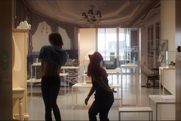 Tot 6 maart 2022 laat Taus Makhacheva (Moskou, 1983) in een grote solotentoonstelling films, objecten en installaties zien. Meekijken, meemaken, meedenken en meegenieten met Taus Mahkacheva en haar werk is wat we leerlingen bieden binnen het onderwijsprogramma. Dicht op de huid van het ontstaansproces van Taus’ werk ontdekken leerlingen wat dat met henzelf, hun eigen identiteit en die van mensen en culturele fenomenen om hen heen te maken heeft. Hoogtepunt van de tentoonstelling is het werk Charivari (2019), dat voor het eerst in Nederland te zien is. De installatie doet denken aan een circus, met trapezes en kostuums van performers en is een mix van sculpturen, geluid en absurdistische verhalen. De vaste collectiepresentatie van het museum, Ferhaal fan Fryslân, komt door Taus’ werk in een ander daglicht te staan en wordt met de blik van Taus ook onderzocht tijdens het bezoek.