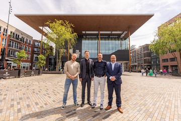 van nieuw gebouw met feestprogramma