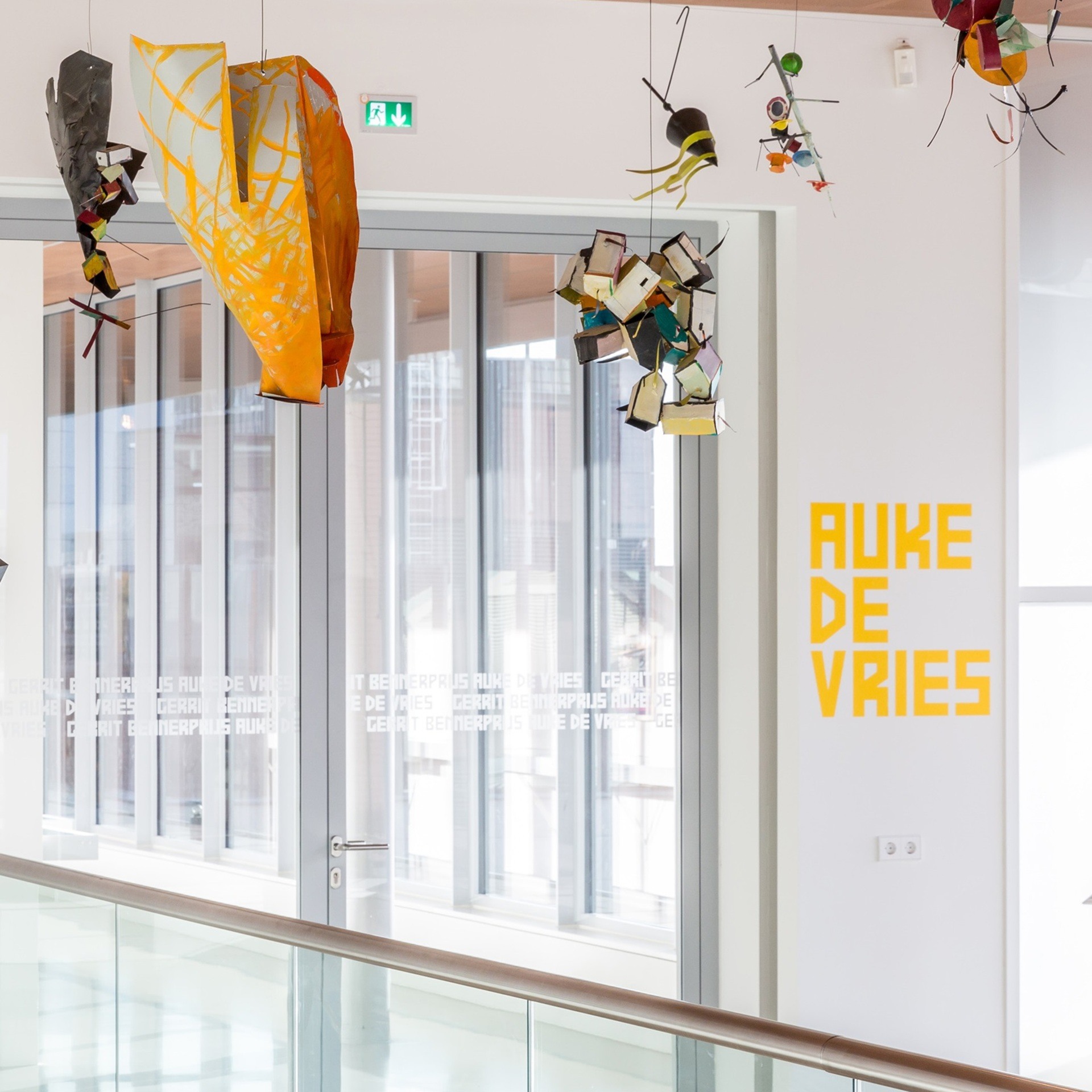 Op de derde verdieping van het museum in Leeuwarden is een atelierachtige situatie gecreëerd. De bezoeker wordt vanaf de trap op de derde verdieping tot in de tentoonstelling verwelkomd door een speelse verzameling van de hangende dynamische werken. Deze vormgeving is geïnspireerd op het atelier van de kunstenaar in Den Haag. Deels uit ruimtegebrek hangt het plafond van De Vries’ zolderatelier vol met kleurrijke sculpturen.
